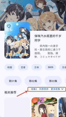 2、介绍页面中,有不同的字样和名称的位置,就是资源栏,有“线路1”字样位置点击就可以更换资源。