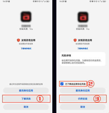 2.再次点击apk安装,点击[了解风险],勾选[已了解此应用存在风险]并点击[仍然安装]