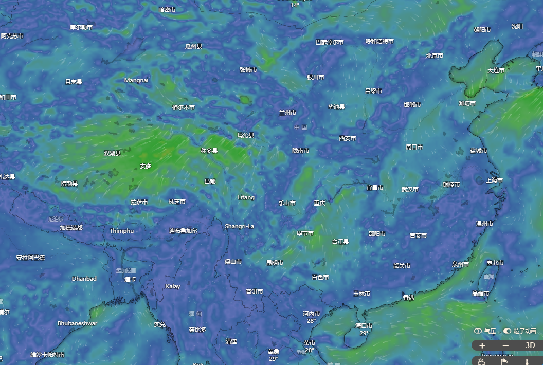 3、观察所在地区的风线走向来了解风力大小。