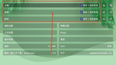 2、点击最上方的设置连接中,用户可以一次性调节壁纸、影视源、直播源等多个线路。