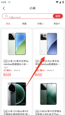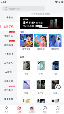 1、进入软件后直接来到“分类”页面,然后选择你要租的手机品牌。