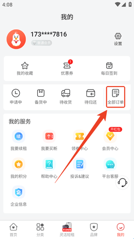 2、然后继续点击“全部订单”。