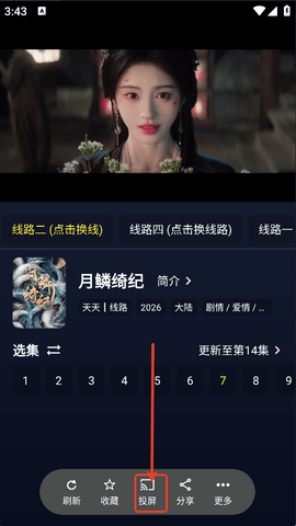 2、视频播放最下方就会有一个“投屏”按钮,用户点击一下就可以进入。
