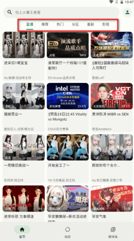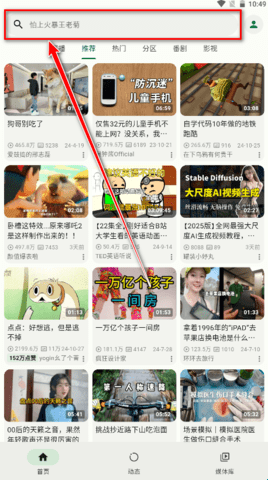 1、PiliPlus首页界面就能看到各类趣味视频创作,用户可以滑动上方的模块,进入其中欣赏。
