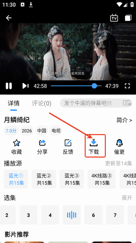 2、影视画面打开之后,就可以点击中间菜单栏中的“下载”按钮。