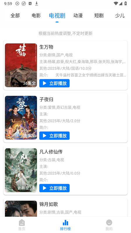 在这里总有你喜欢的影视,拥有精致人性化的页面设计,让操作更加简单;播放更省时,即搜即播,绝无广告。