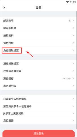 2、然后点击角色隐私设置;