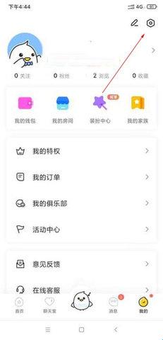 1、打开不鸽电竞app,点击我的页面右上角的设置。
