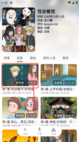 1、选择一部喜欢观看的动漫聚集,直接打开点击“剧集”按钮,开始视频播放。