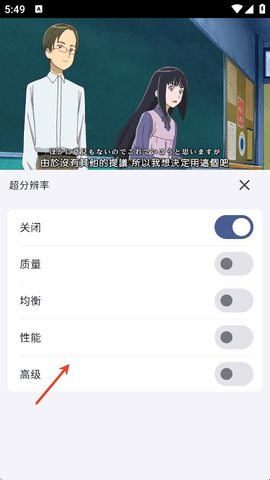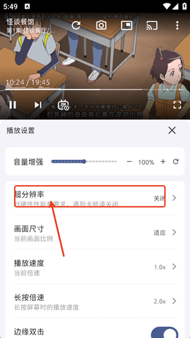 3、详细的菜单内容中,第二个就是“超分辨率”,使用时需要根据设备硬件条件调节。