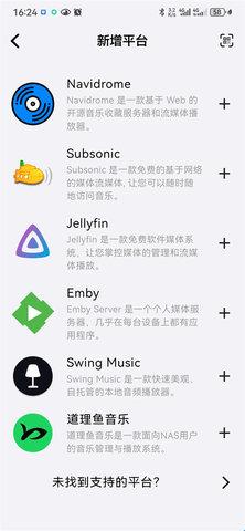 2、点击“新增平台”,选择支持的私有云服务(如Navidrome、Jellyfin等)。