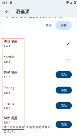 4、漫画源列表下方的资源也是漫画源,用户可以进行自由添加。