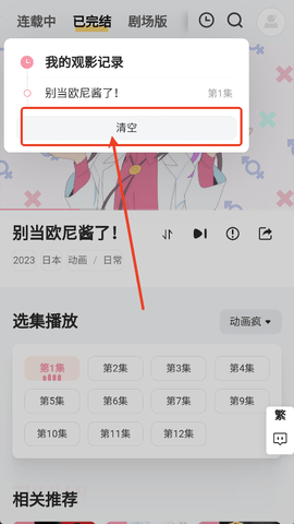 出现动漫内容后,直接点击“清空”所有动漫内容就会直接清空了。