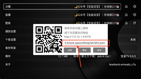 2、详细界面中,可以将获取到的地址粘贴到点播按钮、直播按钮、壁纸按钮等来获取影视源。