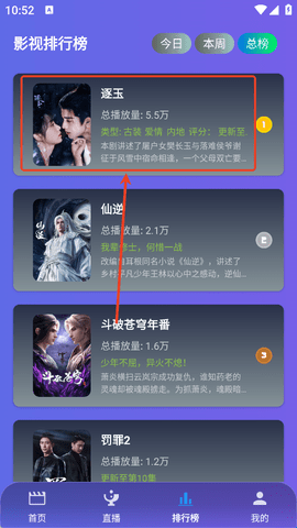 1、用户可以来到排行版中选择想看的影视内容,随意一部都能快速的打开。