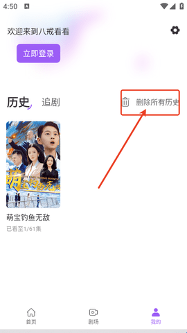 右侧的“删除所有历史”点击一下,观看的痕迹会直接消失,不用选择。