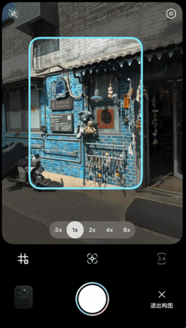 2、举起手机,将镜头放在想要拍的场景中,软件会自动设备后,推荐多个构图、滤镜来选择。