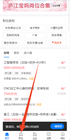 1、进入软件后完成登录,然后点击下方的“职位”按钮。