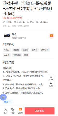 3、找到感兴趣的工作后点击进入详情页,就可以去申请职位,并投递简历了。