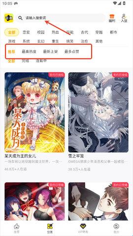 5、如果不确定想看什么,可以使用分类、关键词搜索或查看榜单推荐,找到心仪的漫画。