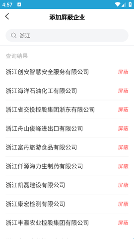 3、紧接着点击下方的“添加屏蔽企业”。