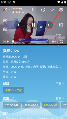 1、正在播放视频的画面中,点击右上角的设置按钮,获取详细的内容。
