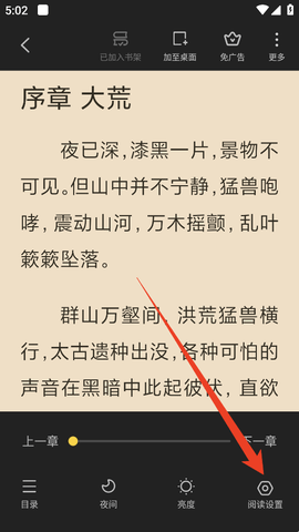 2、然后轻点一下屏幕唤起菜单,点击“阅读设置”。