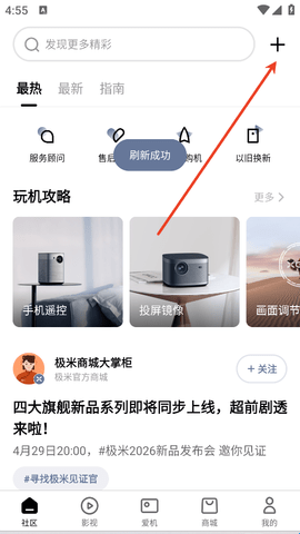 1、极米投屏准备了极米用户们准备的社区,超多使用同产品的用户们在工具中分享自己的使用体验。