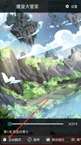 2、画面加载出现后,点击中间就能看到多个功能中,点击左侧“自动翻页”。