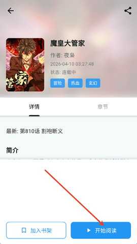1、搜索后的动漫内容界面中,点击封面就可以来到“开始阅读”按钮。
