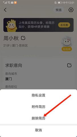 3、最后点击【删除简历】即可。