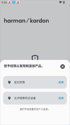 1、开启音箱设备后,打开Harman Kardon One app后,并授予app定位和搜索设备的权限。