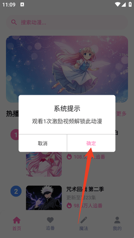 2、找到后点击进入,有些动漫可能需要做一个任务才能免费解锁观看。