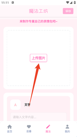 1、需要制作表情包的用户可以直接来到“魔法”页面,然后点击“上传图片”。