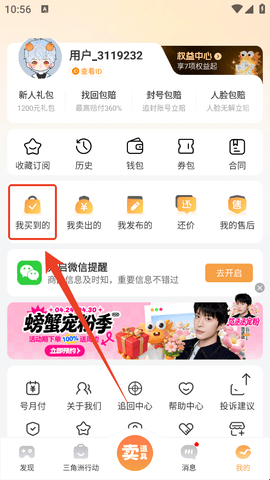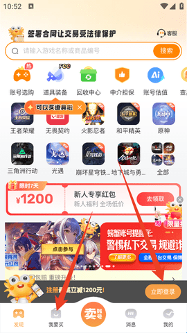 1、需要在螃蟹交易app上买号的朋友需要先完成登录,然后进入“我要买”。