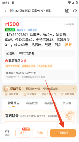 4、找到符合你要求的账号后点击进入详情页,就可以去购买,并完成交易了。