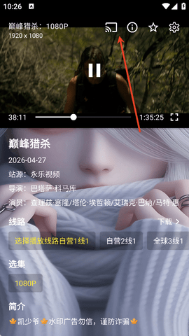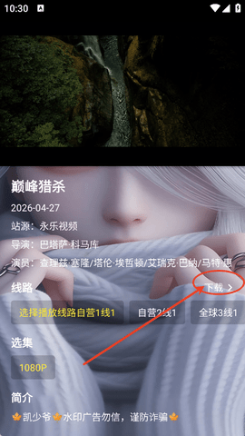 凯少爷影视视频播放中间会有一个“下载”按钮,点击一下就可以选择播放清晰度。