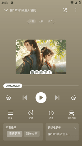 根据自己的阅读习惯来设置声音、语速、定时等功能,还能打开目录查看。