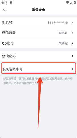 3、最后点击下方的“永久注销账号”,按照步骤操作就能成功注销。