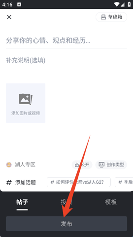 4、最后去编辑帖子内容,点击下方的“发布”就行了。