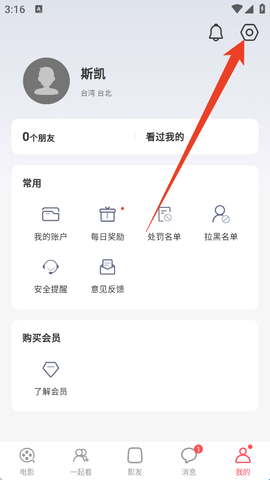 1、直接来到“我的”页面,然后点击右上角设置按钮。