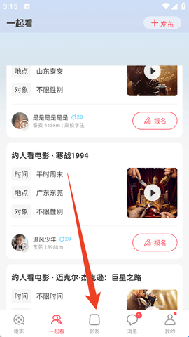 安卓一起看电影app是一款倾向于交友的寻找电影搭子的APP,如果你觉得一个人去电影院有点孤单或者无聊,可以来这里寻找同行的玩伴。自己登录平台去寻找有共同爱好的电影搭子,然后约好时间一起去看电影,说不定还能成为长期的好友,感兴趣的用户欢迎下载使用!