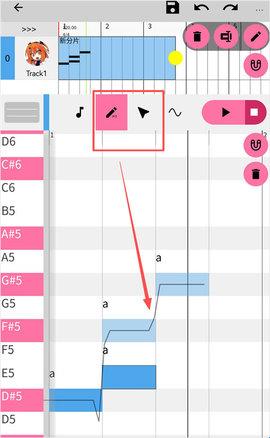 4、点击音轨区域,开始创建音符,输入歌词并调整音高。