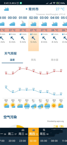 2、一键确定之后即可获取到相关城市的天气状况,右边按钮可以随意切换详细的信息。