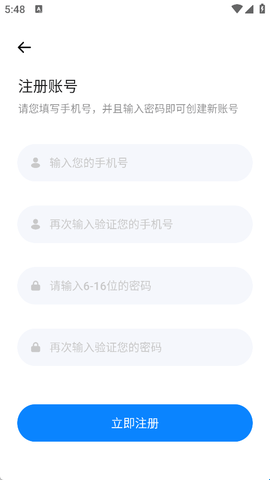 4、然后填写手机号、验证码,设置好密码,点击【立即注册】就行了。