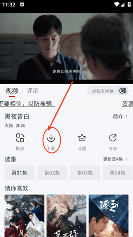 1、进入到果茶视频任意视频播放画面中,需要等待画面出现后,点击中间“下载”。