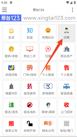 2、然后就能来到邢台123招聘信息栏,在这里找工作。