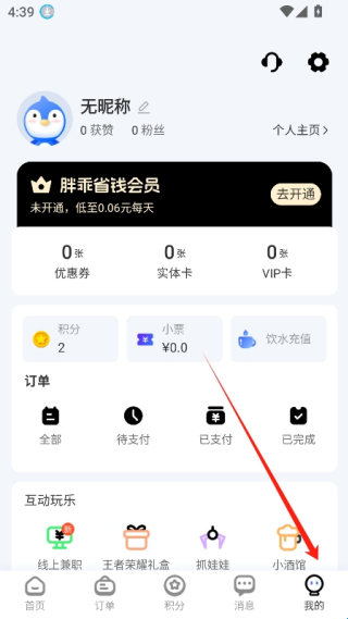 1、打开胖乖,右下角我的。