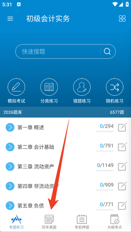 1、我们进入软件后直接点击下方的“历年真题”。