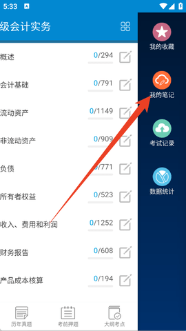 2、然后点击屏幕右侧这里的“我的笔记”,这样你就可以进入记录笔记了。